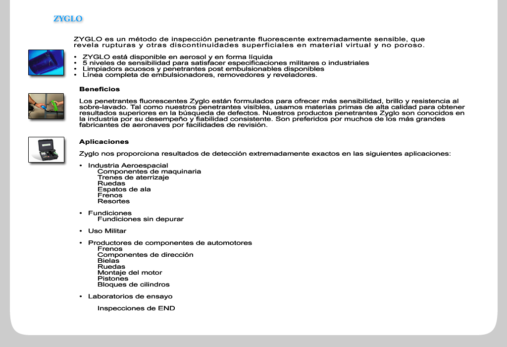 Productos >> Tintas Penetrantes >> Zyglo