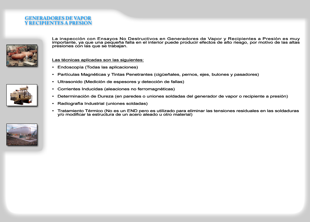 Servicios >> Generadores de Vapor y Recipientes a Presión