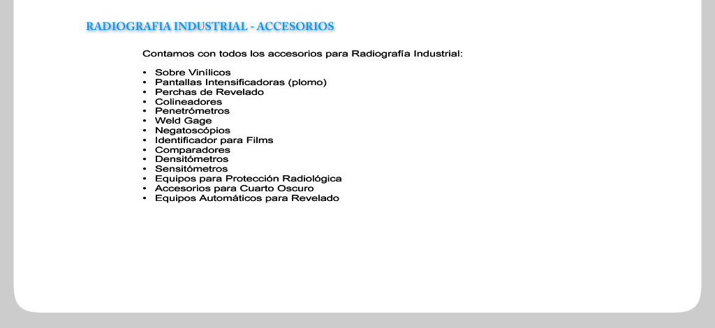 Productos >> Radiografía Industrial >> Accesorios